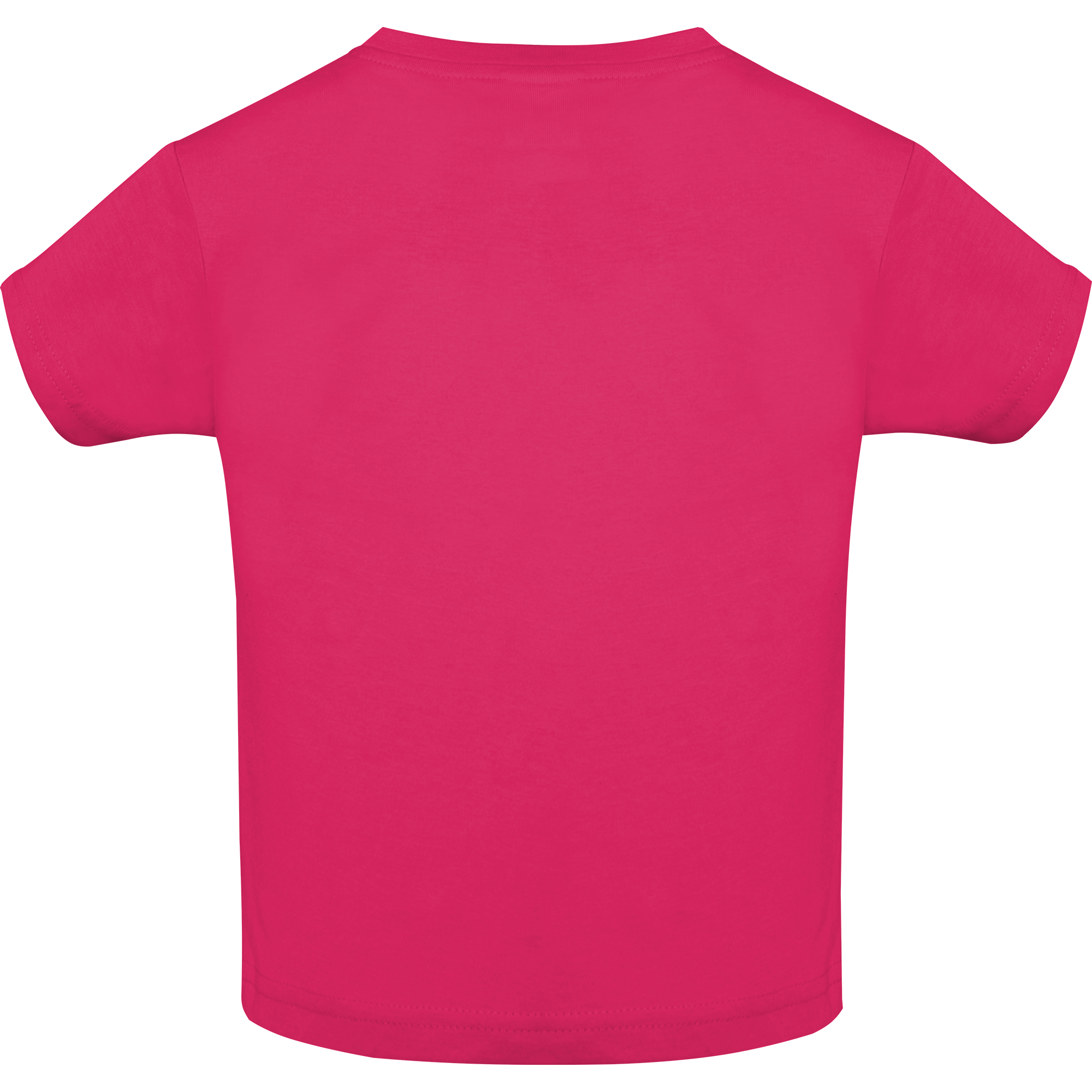 Camiseta de manga corta especial para bebé, confeccionada con tejido en galga fina y acabado compactado. Cuello redondo y apertura en el hombro con corchetes desde la talla 6m a 18m. Talla 2A sin apertura en el hombro. Costuras laterales.