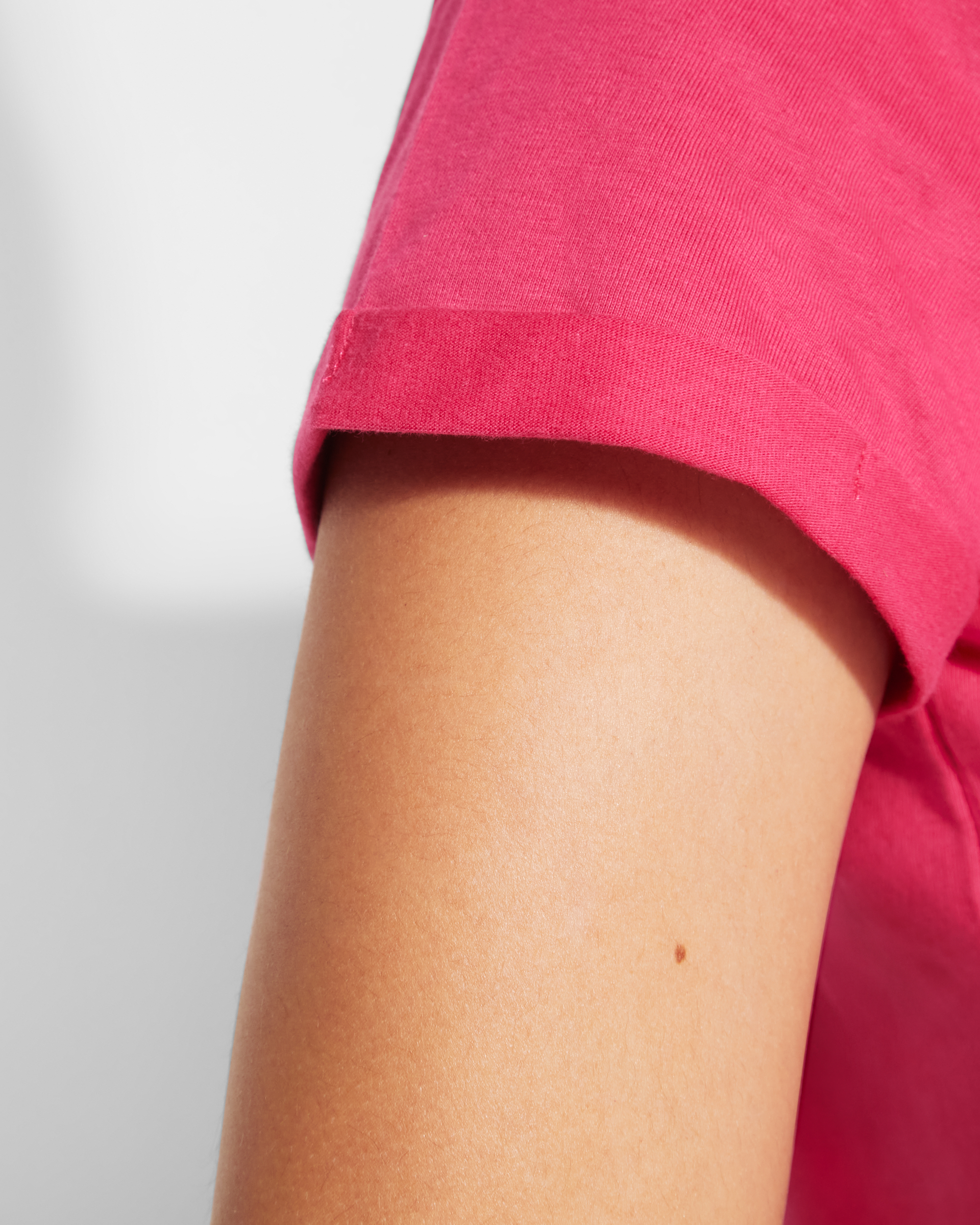 Camiseta de manga corta holgada con escote del mismo tejido. Cuello con cubrecosturas interior. Mangas con dobladillo asegurado. Costuras laterales.