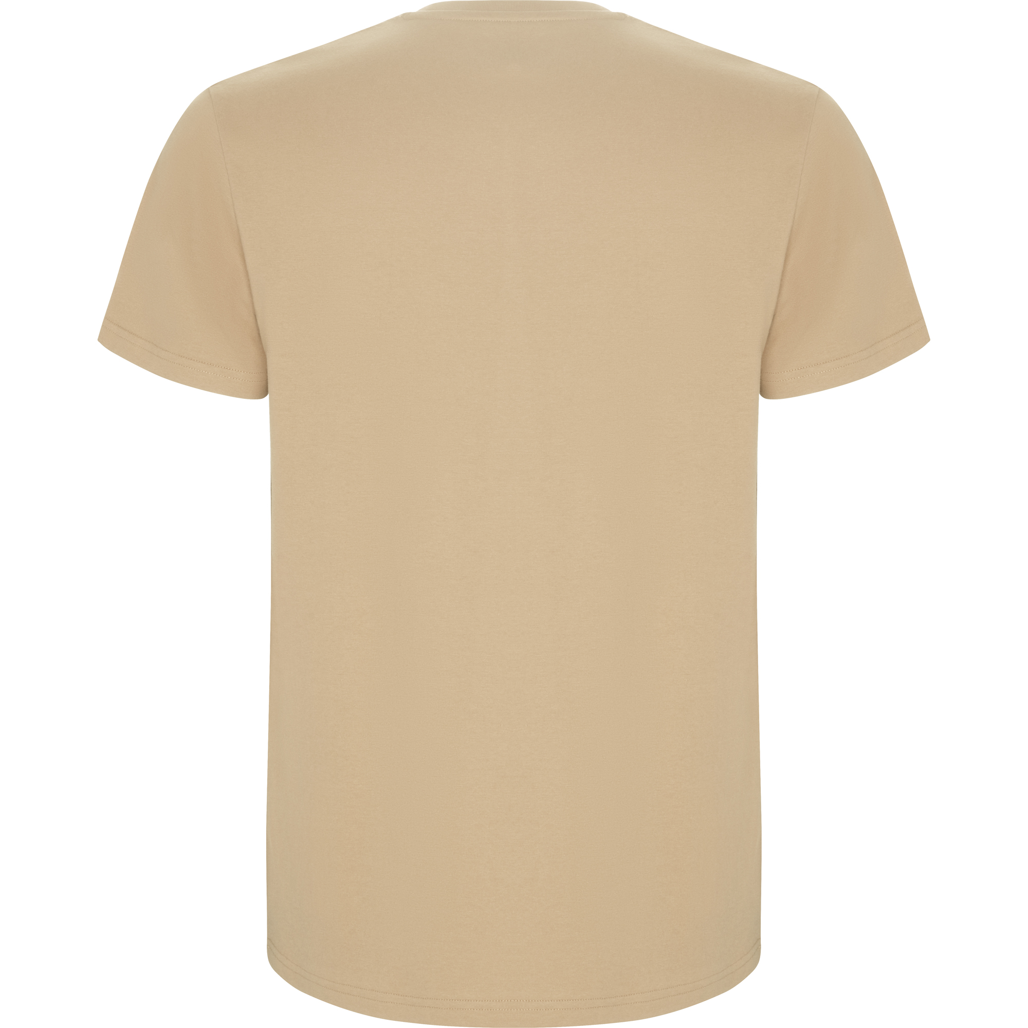 Camiseta tubular de manga corta. Cuello redondo con elastano. Costuras laterales en tallas de niño.